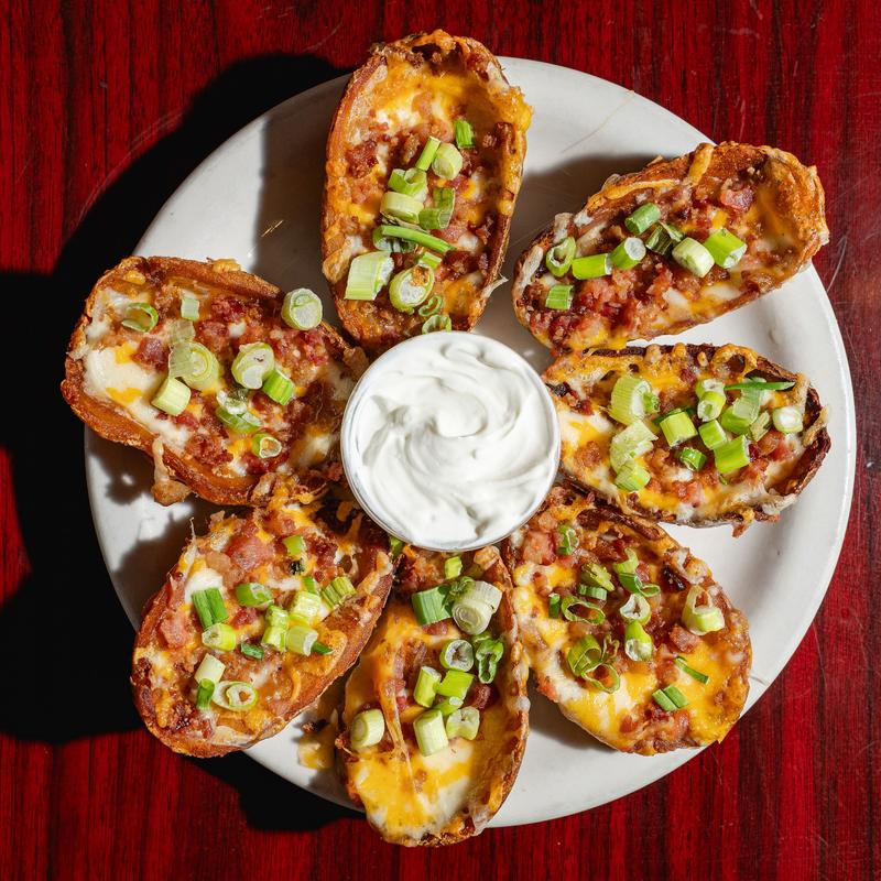 Covered with melted Cheddar & Monterey Jack cheese, bacon bits & scallions, served with sour cream